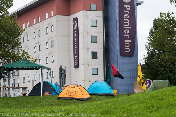 The Occupy Democracy camp was a couple of minutes away, close to the Premier Inn