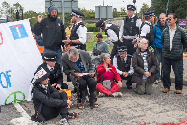Police continue to try and persuade the protesters to move off the road
