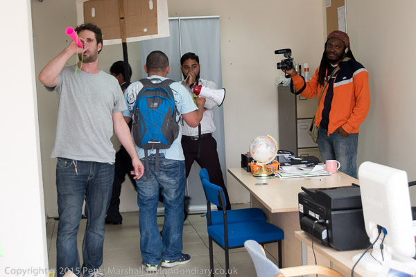 Protesters go back inside the office