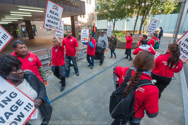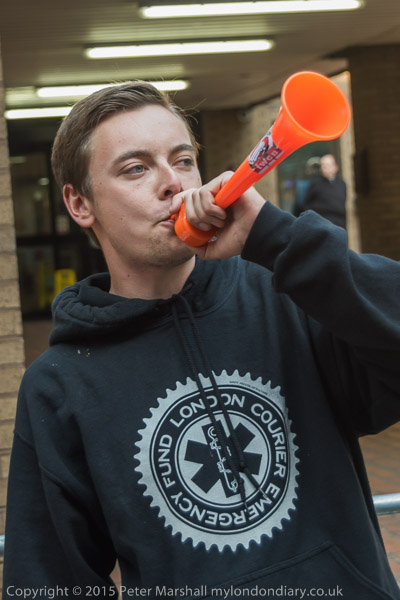The IWGB is also fighting for a living wage and better conditions for cycle couriers, and several came in support of the cleaners