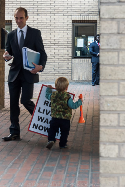 and that young protester stand on the pavement as a group of lawyers with heavy briefcases walk past