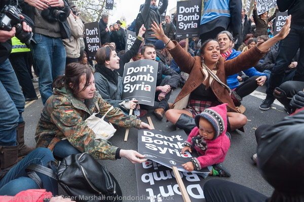 People moved on to the road and stood there blocking it. Police tried to persuade them to move with little success
