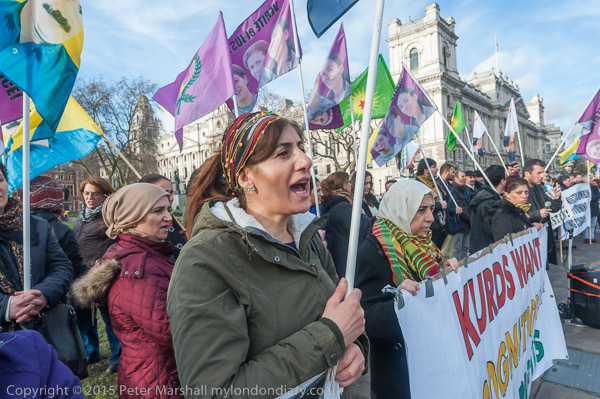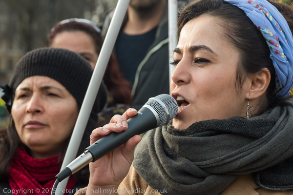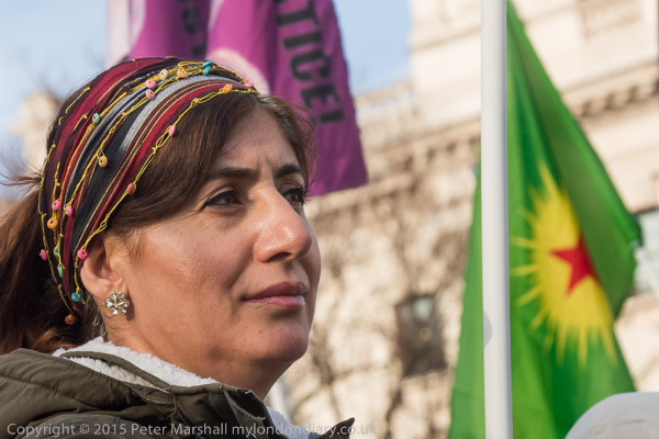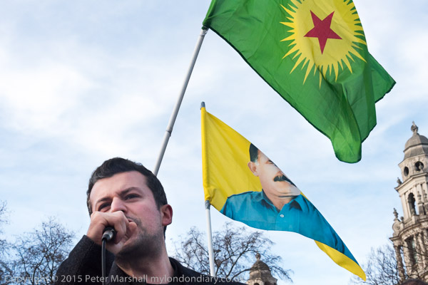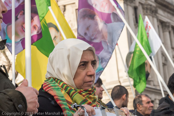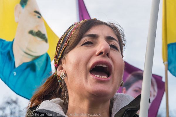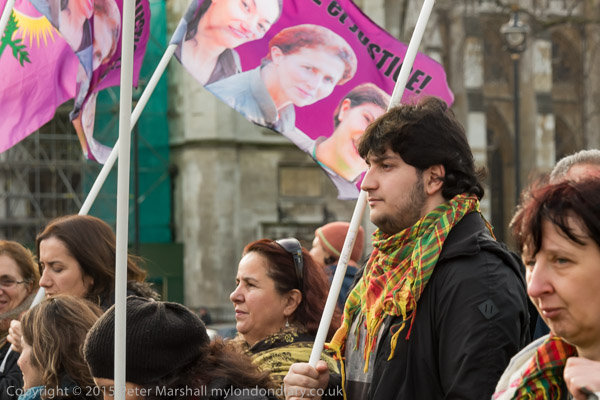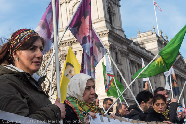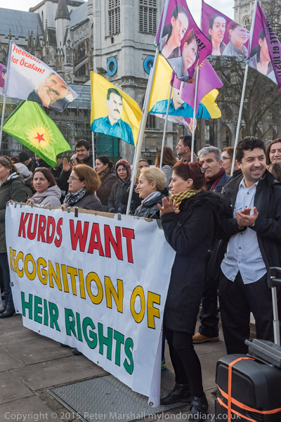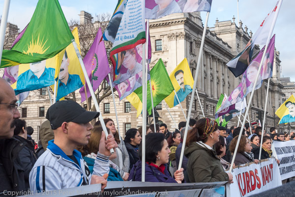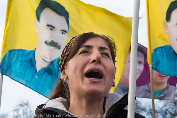 Kurdistan flags, flags with an image of imprisoned PKK leader Adbullah Ocalan and of three Kurdish Women politicians