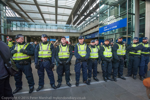 As well as the line across the entrance there were many more police inside the station