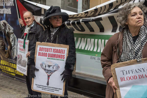 to protest at other shops selling Israeli blood diamonds including Tiffany