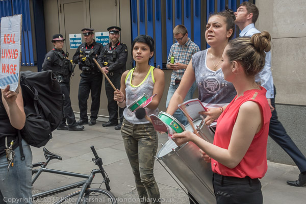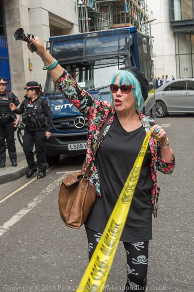 police watch the protest - taking place just a few yards from the City of London police HQ