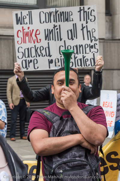 Another cleaner, Juan Carlos speaks at the end of the protest. The strike continues with a daily picket
