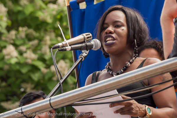 Zita Holbourne of BARAC and PCS holds up her 'Black Lives Matter' poster as she speaks