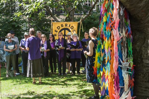 Raised Voices Peace Choir singing 'The H-Bombs Thunder'.
