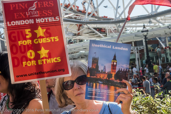 London Eye secuirty tell us they own this part of the public walkway and protests are not allowed'