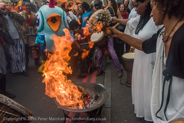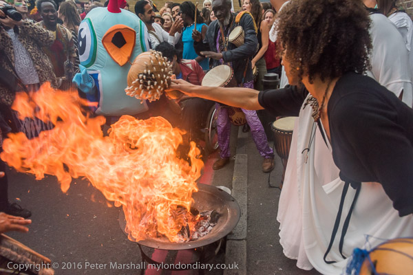 and then the flames rise up as a white rum is poured onto the fire, a small measure at a time