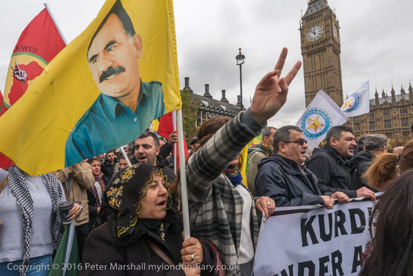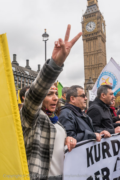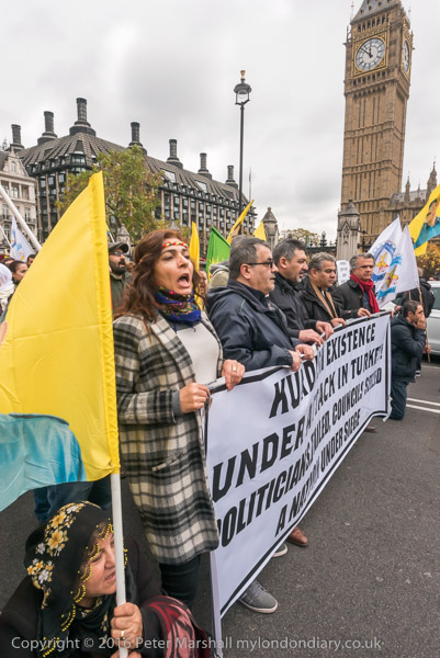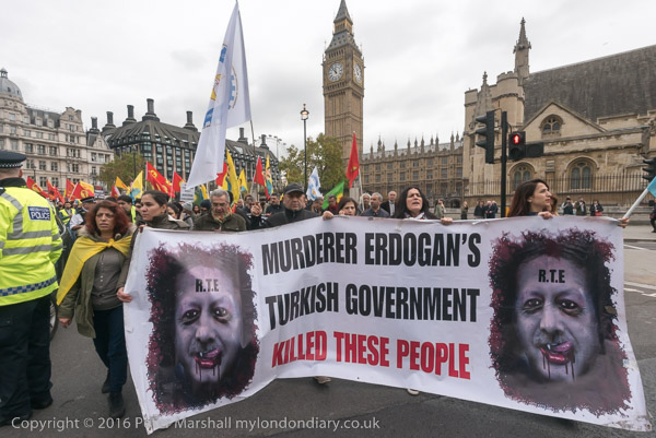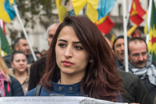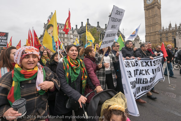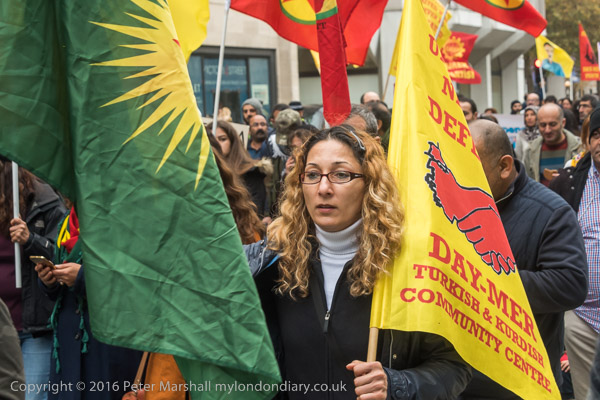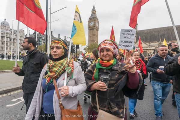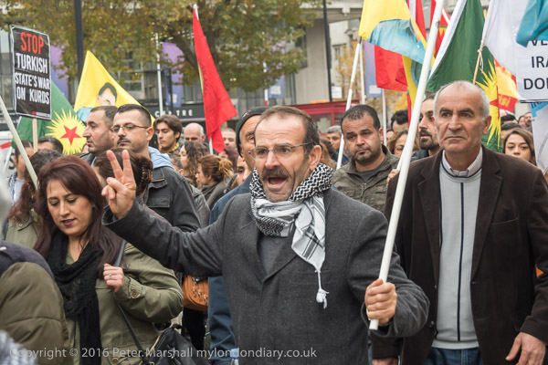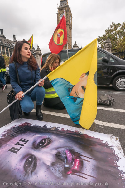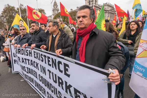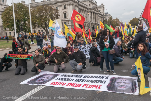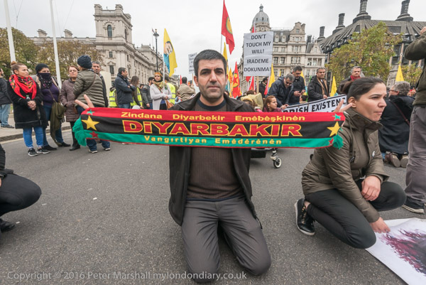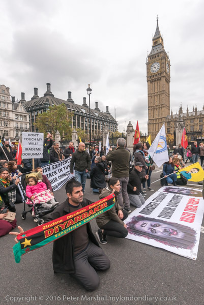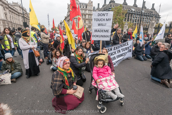 Kurds marching against Edrogan's arrest of MPs sit down briefly on