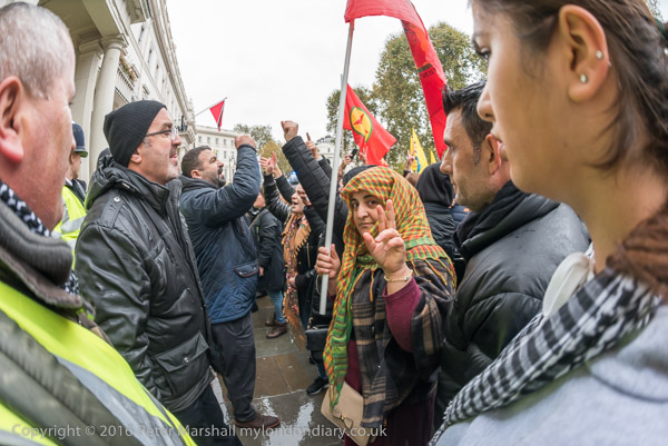 The protesters march up to the Turkish Embassy in Belgrave Square