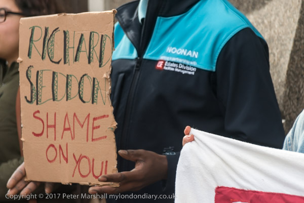 UVW General Secretary Petros Elia holds a poster 'Noonan Shame on