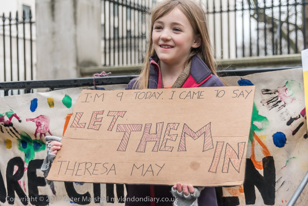 'I'm 9 today. I came to say LET THEM IN Theresa May'