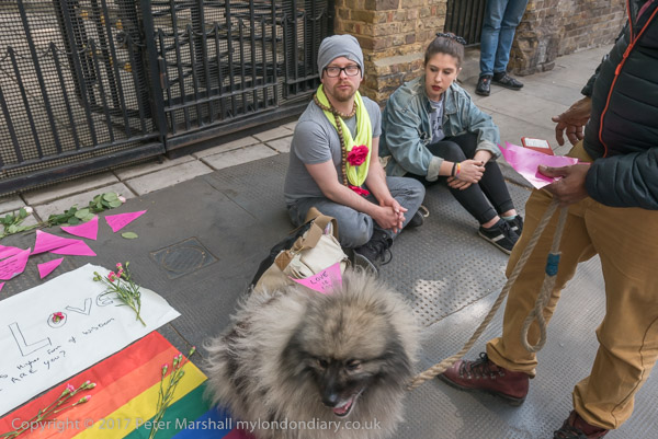 Setting up a pavement shrine outside the Russian Consulate in Kensington