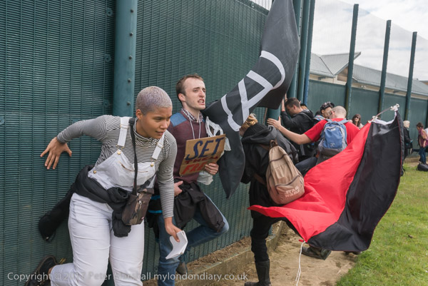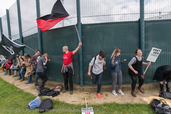A quarter of an hour later people reach the prison fence - and start