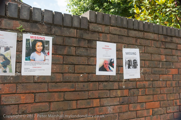 Even in the wealthy streets there are some posters of the missing