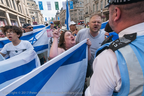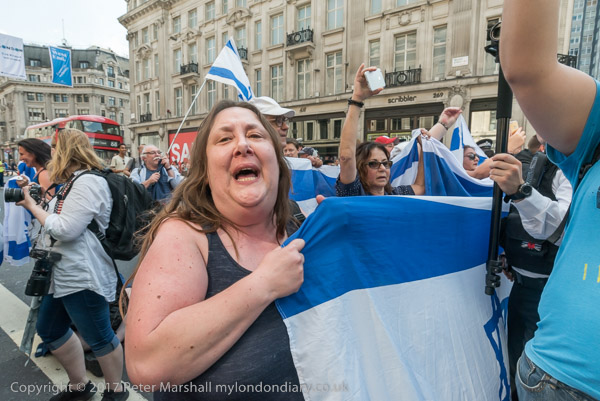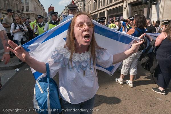 Zionists with Israeli flags block Regent St at Oxford Circus to hold