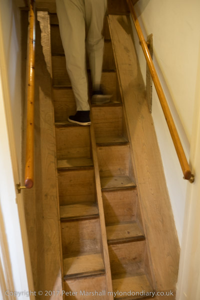 Some rather odd stepped stairs lead to the attic flooor