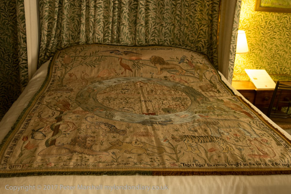 A detail of the embroidered bedspread