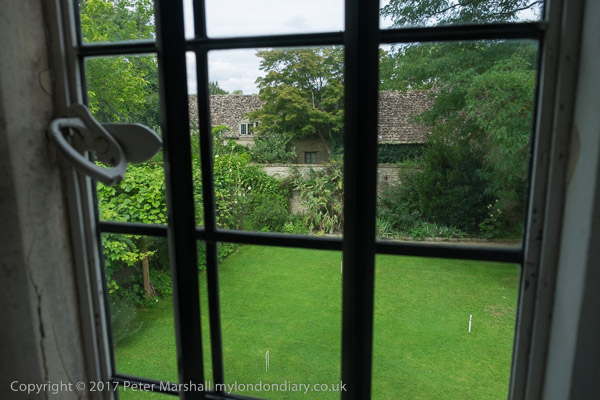 and the view from a window looking out to Garden Cottage and North