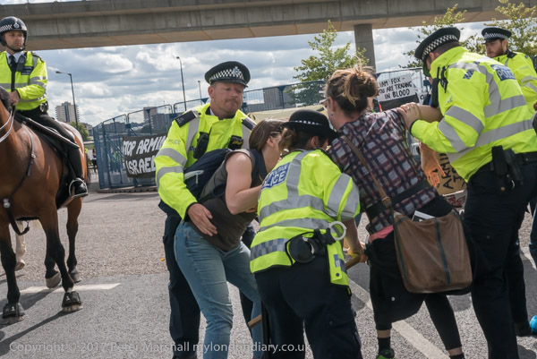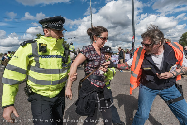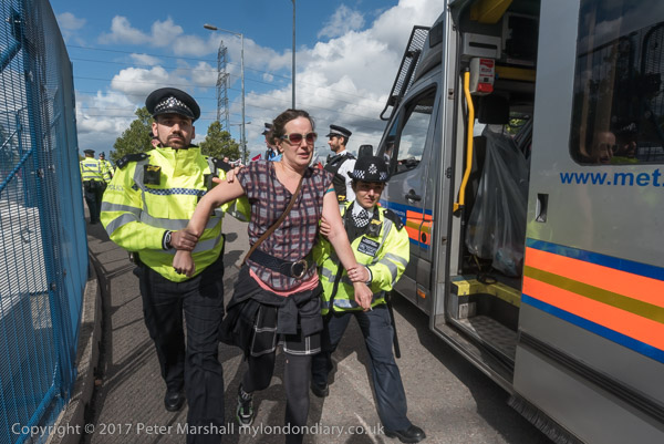 and officers carry away another woman who refused to move