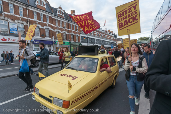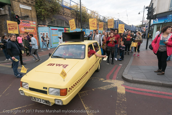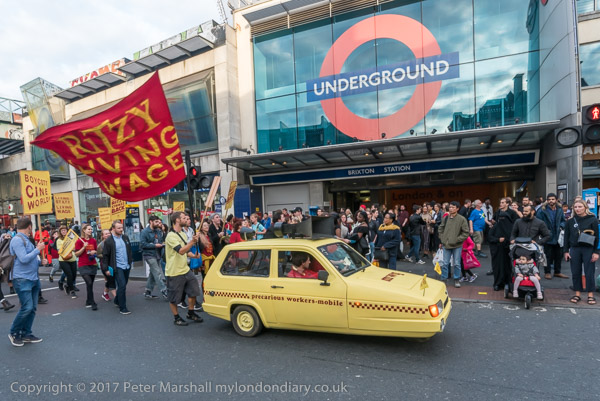 The Ritzy strikers march past Brixton Underground station and the
