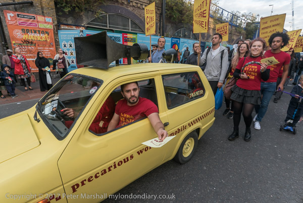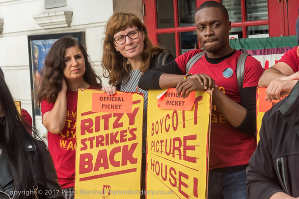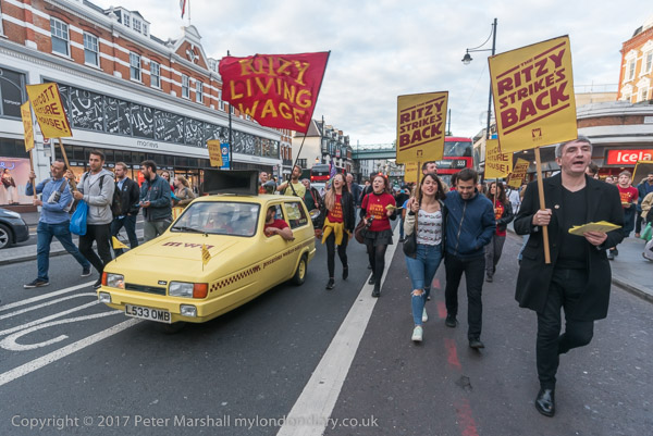 The Ritzy strikers marched around the centre of Brixton behind the