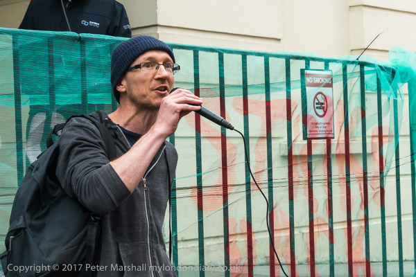 Green Party co-leader Jonathan Bartley speaking in front of Stewart
