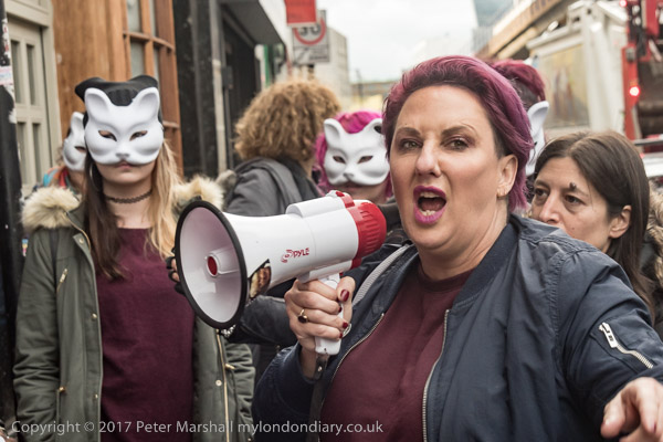 so that a customer may leave - but not without the protesters telling