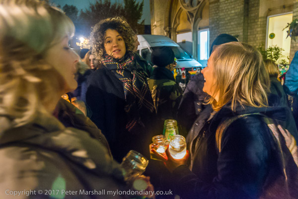 and pss out lighted candles to others in the crowd