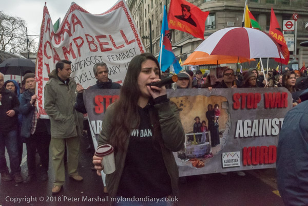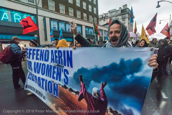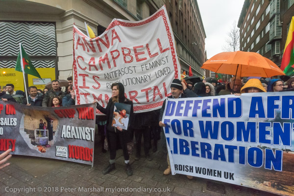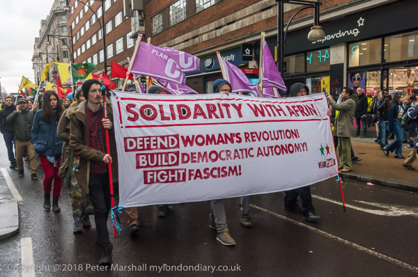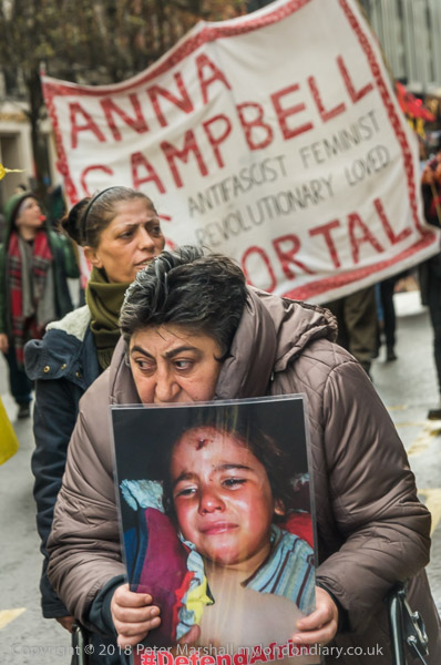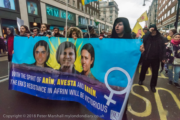 Plan C's banner 'Solidarity with Afrin - Defend Woman's Revolution!,