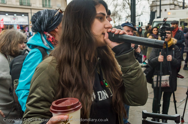 the front of the protest against the attacks and calling for