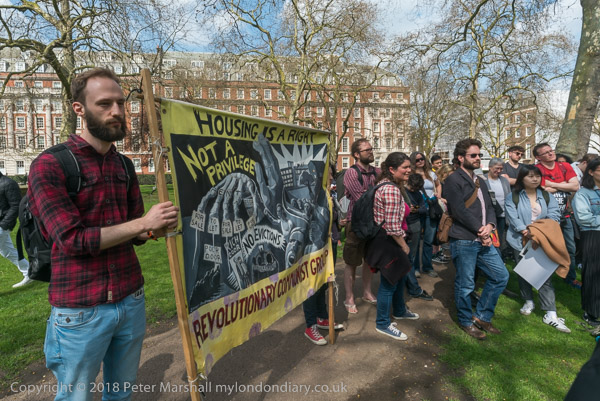 The Revolutinary Communist Group banner - 'Housing is a right not