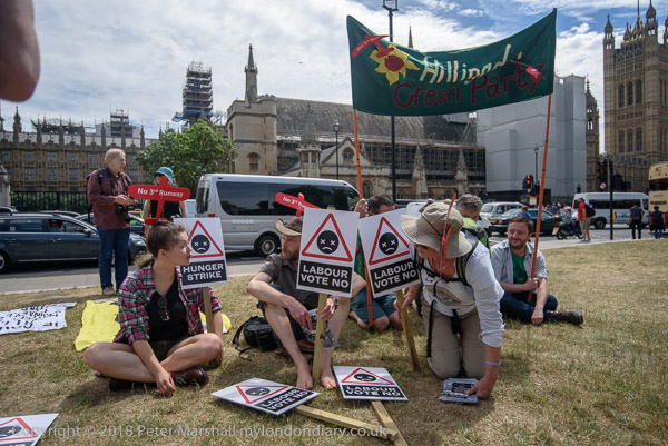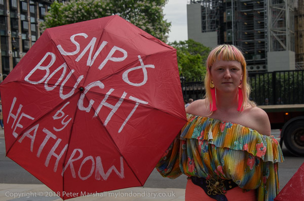 Several protesters wear Boris Johnson masks. The MP from Uxbridge