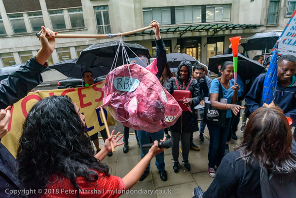 Richard Burgon raises a fist with the UVW cleaners