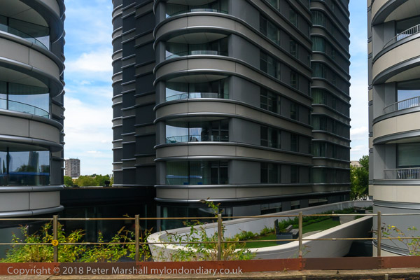 New riverside flats at Vauxhall with a small garden facing the railway