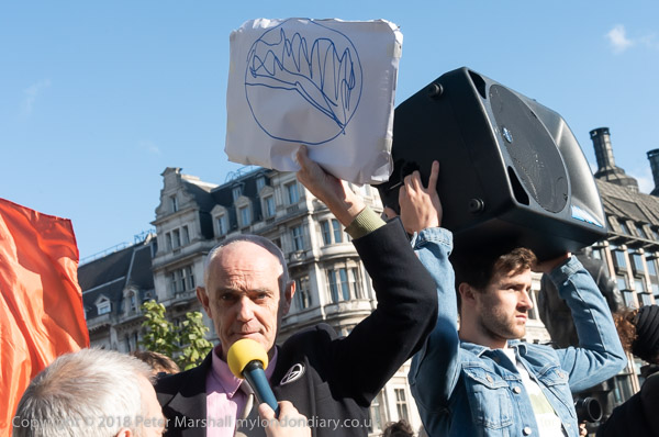Environmental activist Donnachadh McCarthy holds up a diagram to