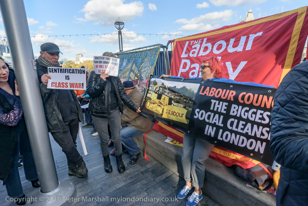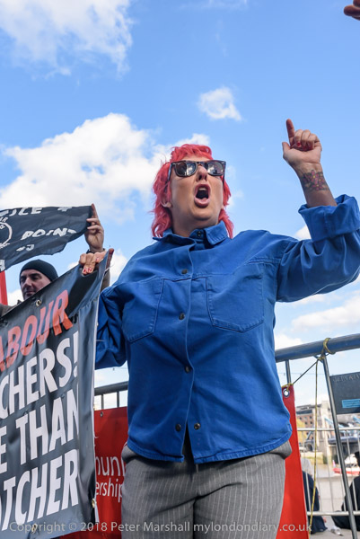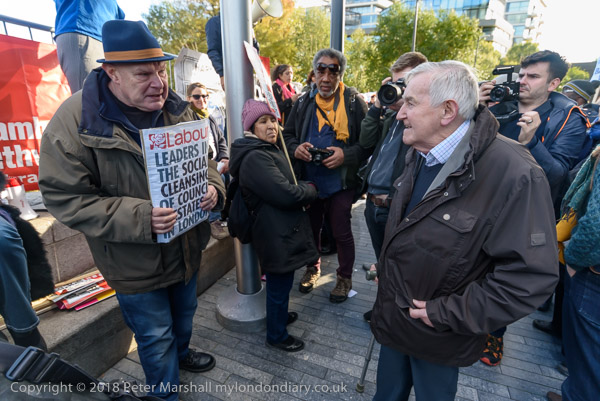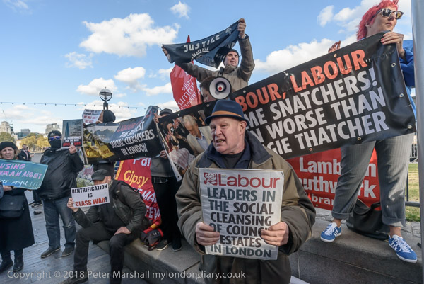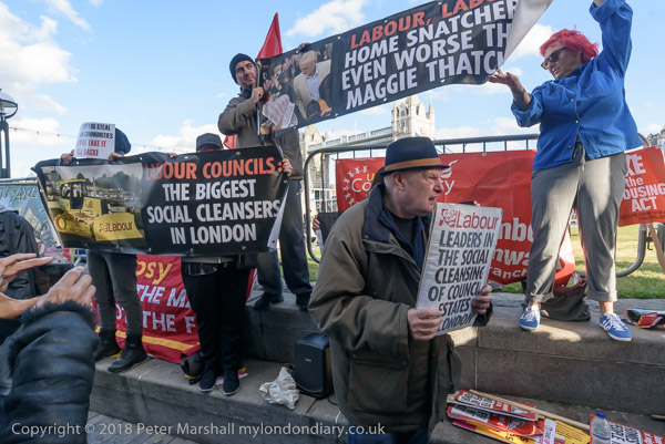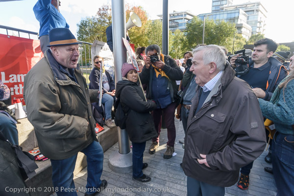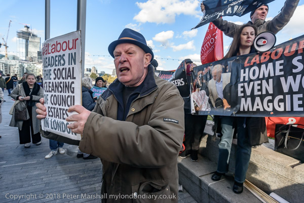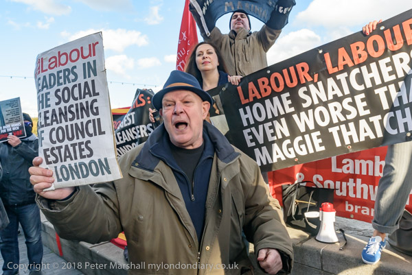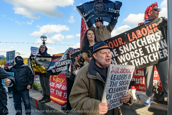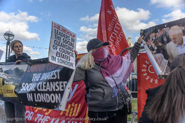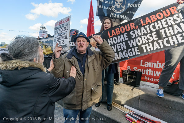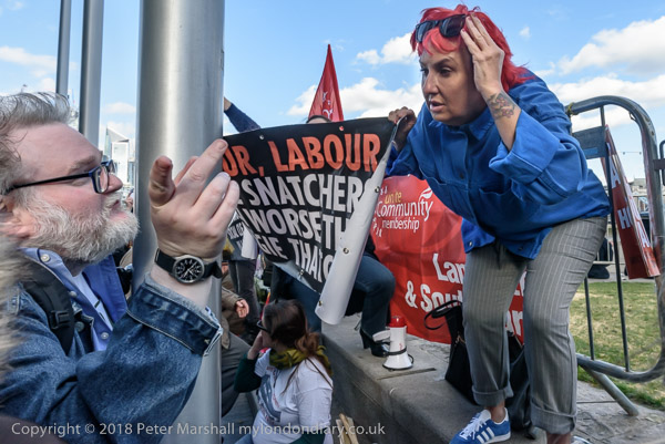 Martin Smith of Class War shouts loudly at Labour Party supporters