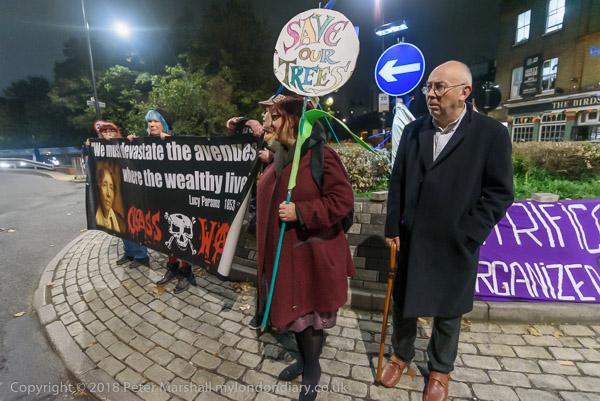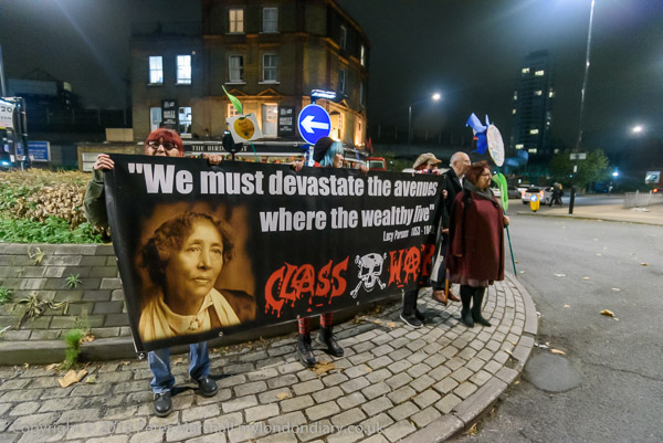 and Class War's Lucy Parsons banner 'We must devastate the avenues