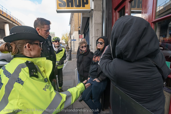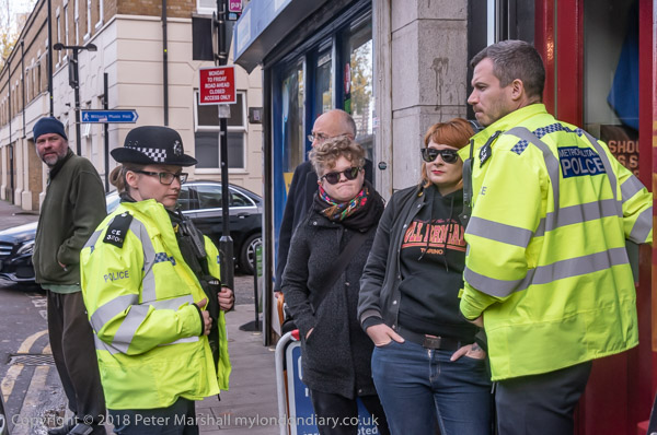 A woman police officer complains to Class War about their language