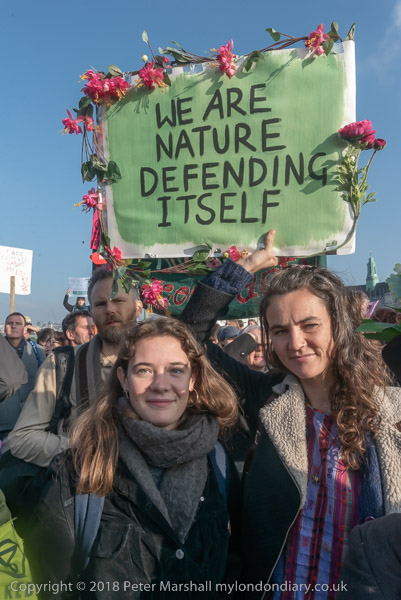 'Rebel For Life' the Extinction Rebellion main banner across the road