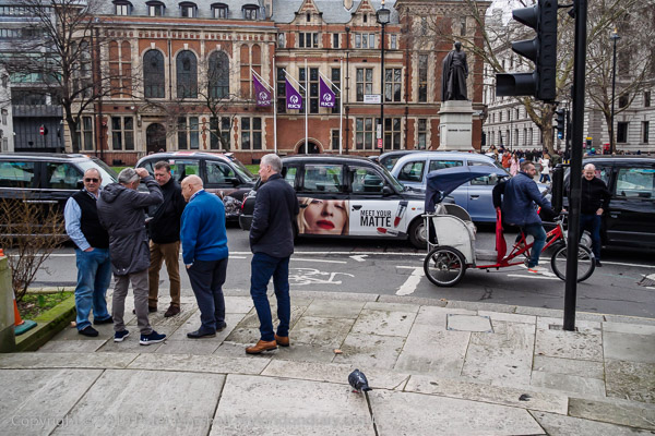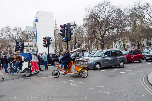 A ride to Trafalgar Square, half a mile away, costs £10 per person.