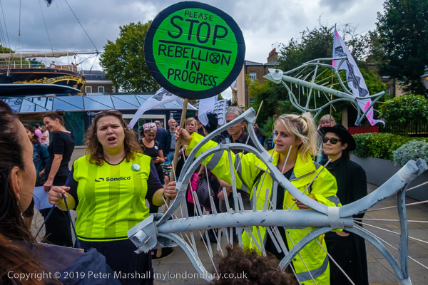 'Act Now' a bicycle as a boat as a reminder of rising sea levels
