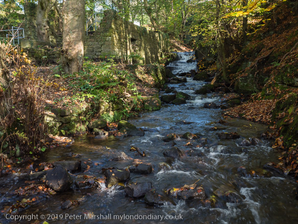 and look upstream and at some of the ruined mill buildings
