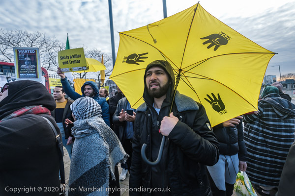 But rather more had come to protest against him. A line of police