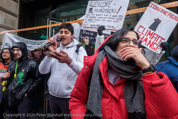 The protesters blockaded the closed offices and held banners and posters while various speakers talked about Glencore's crimes around the world, including a speaker from West Papua where mining activities are poisoning drinking water and from various groups including Earth Strike, RCG, Extinction Rebellion, Free West Papua campaign, Oxford Climate Justice Campaign.