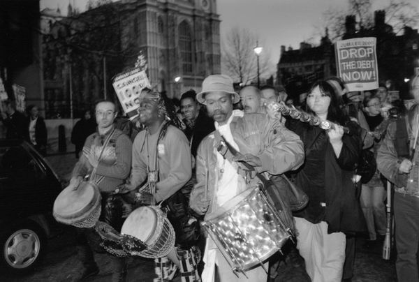 Marchers listening to the speeches in Trafalgar Square: Jubilee 2000 final