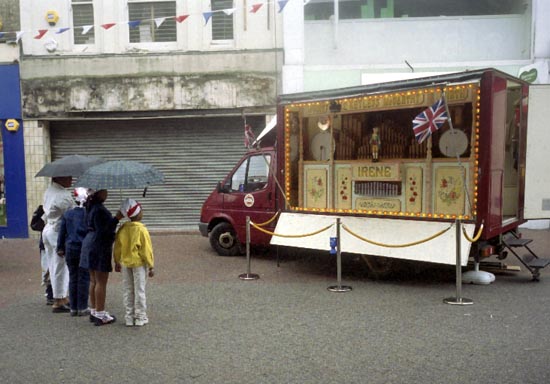 people - apart from the odd shy kid - were happy to have their pictures taken and to talk. one man saw i was photographing the decorations on his house and came over to tell me how his father had decorated it for the silver jubilee twenty five years ago and that he had been determined to do it better.
